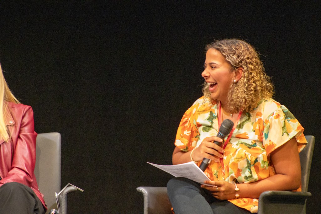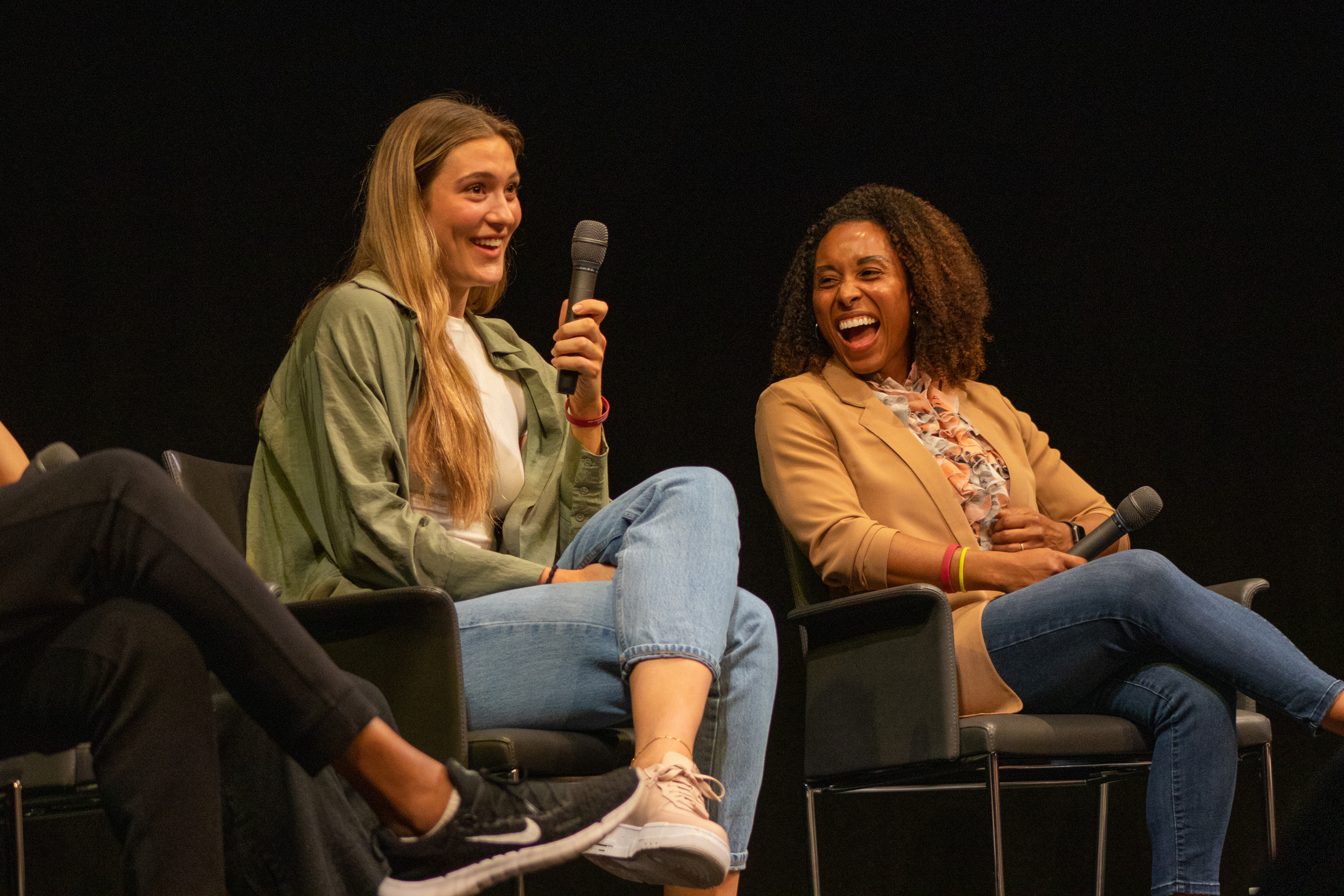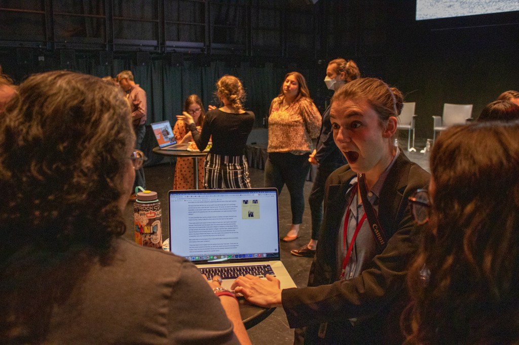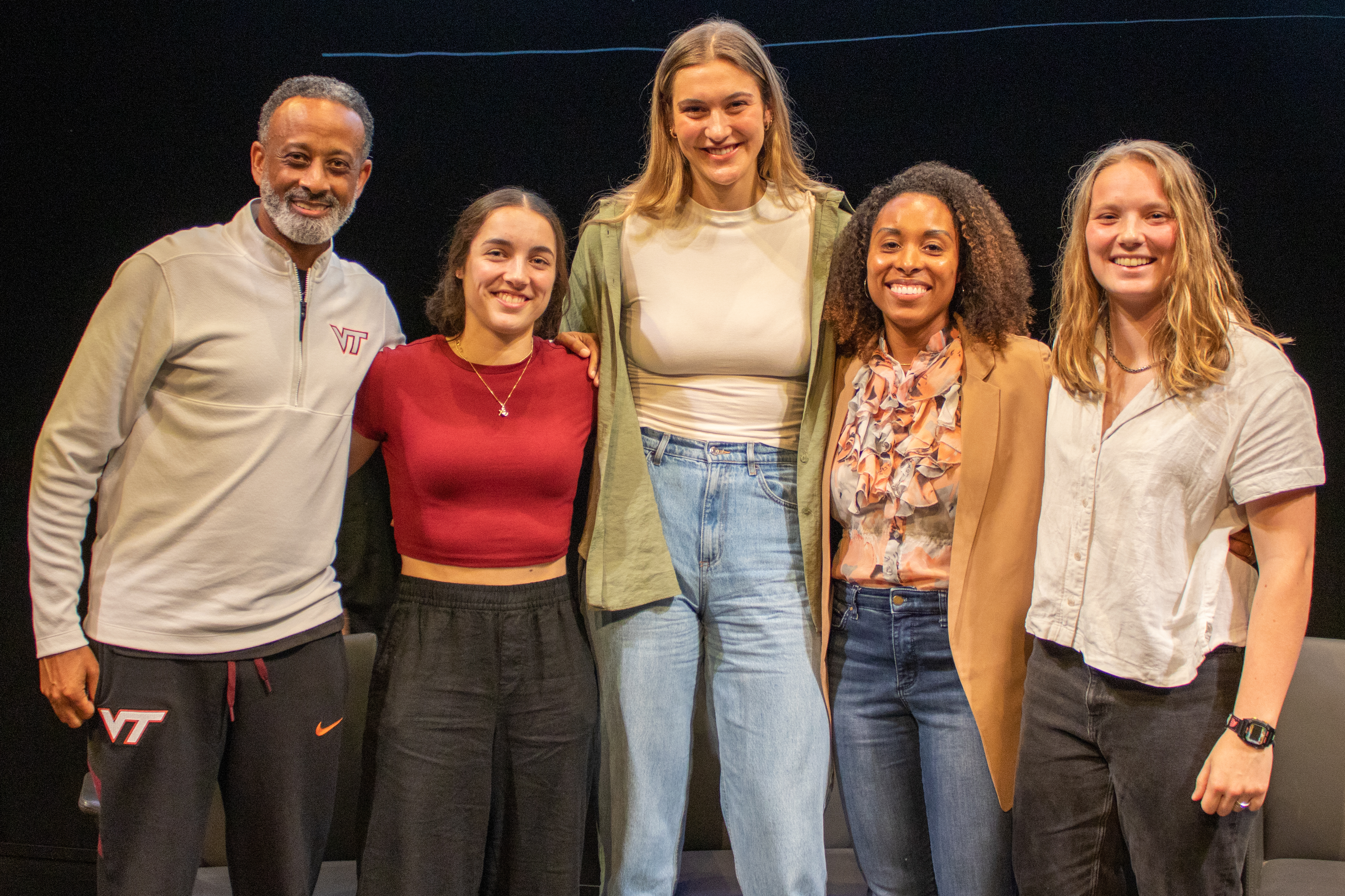 Celebrating 50 years since the passage of Title IX, key figures from Virginia Tech’s women’s athletics joined the students of my Spring 2023 students in Moss Arts Center to discuss what it means for women to have opportunities to play collegiate sports. Students moderated two panels of guests – one featuring past athletes and one focused on current issues – to have discussions about what’s improved for women athletes and what work is still to be done. After the panels, they invited the community to a mixer as they discussed and showed their journalism.